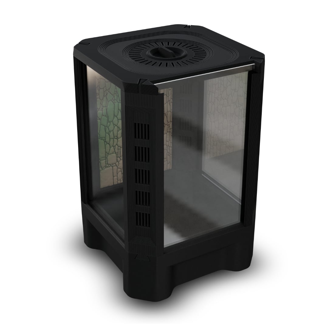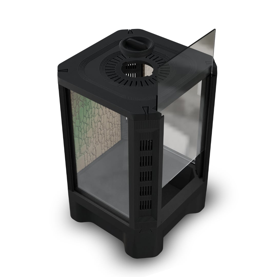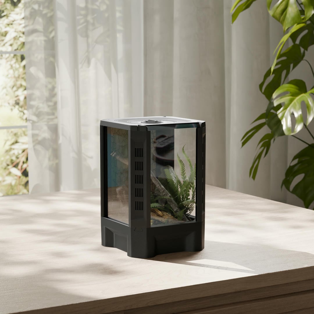 To terrarium to efekt naszej wspólnej pracy – od projektu po wykonanie. Łączymy pasję do hodowli z estetycznym designem, tworząc lekkie, nowoczesne i funkcjonalne terrarium z PLA i przezroczystego akrylu.